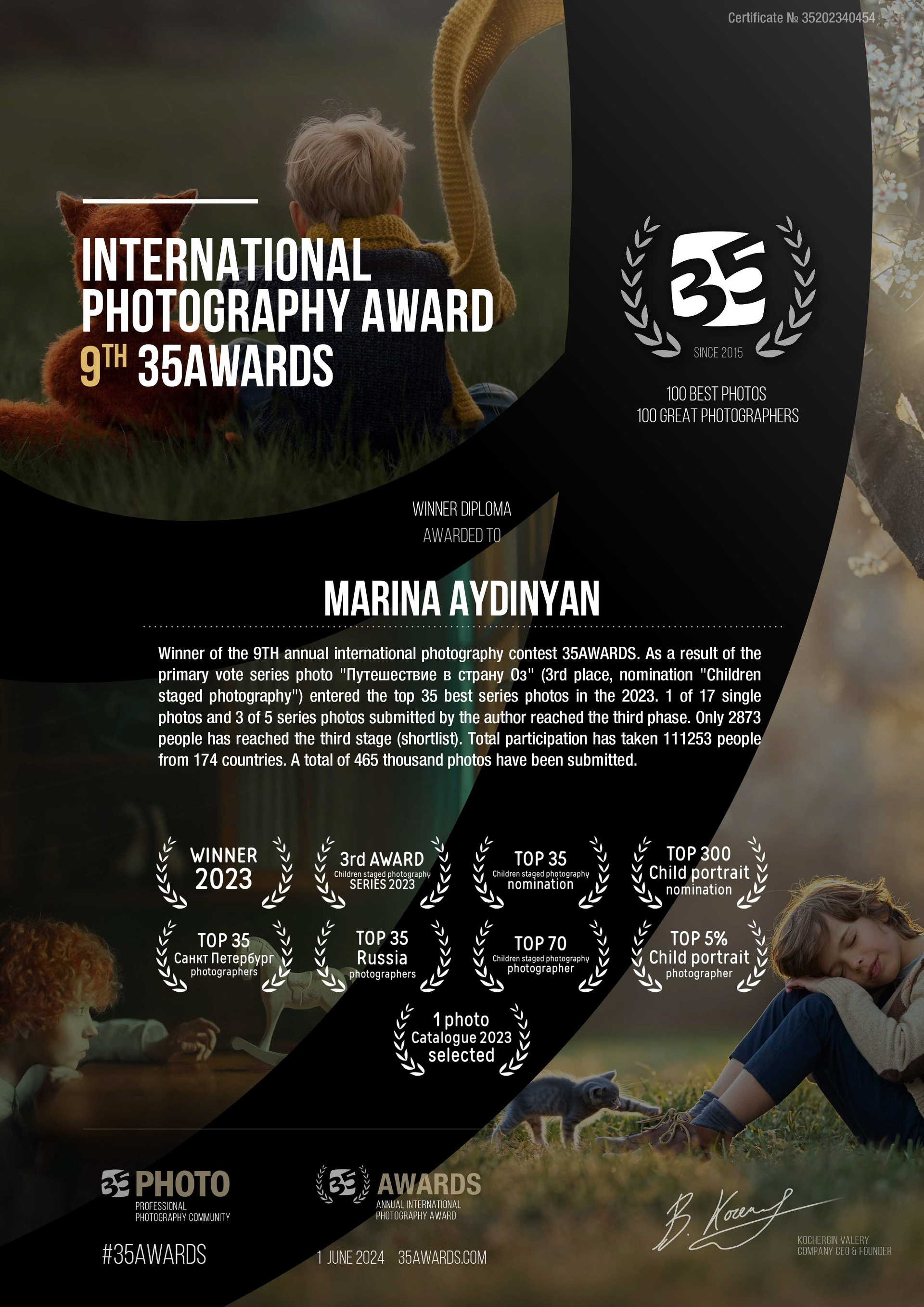 *По итогам престижной международной премии 35AWARDS 9th , среди 111 253 профессиональных фотографов из 174 стран мира