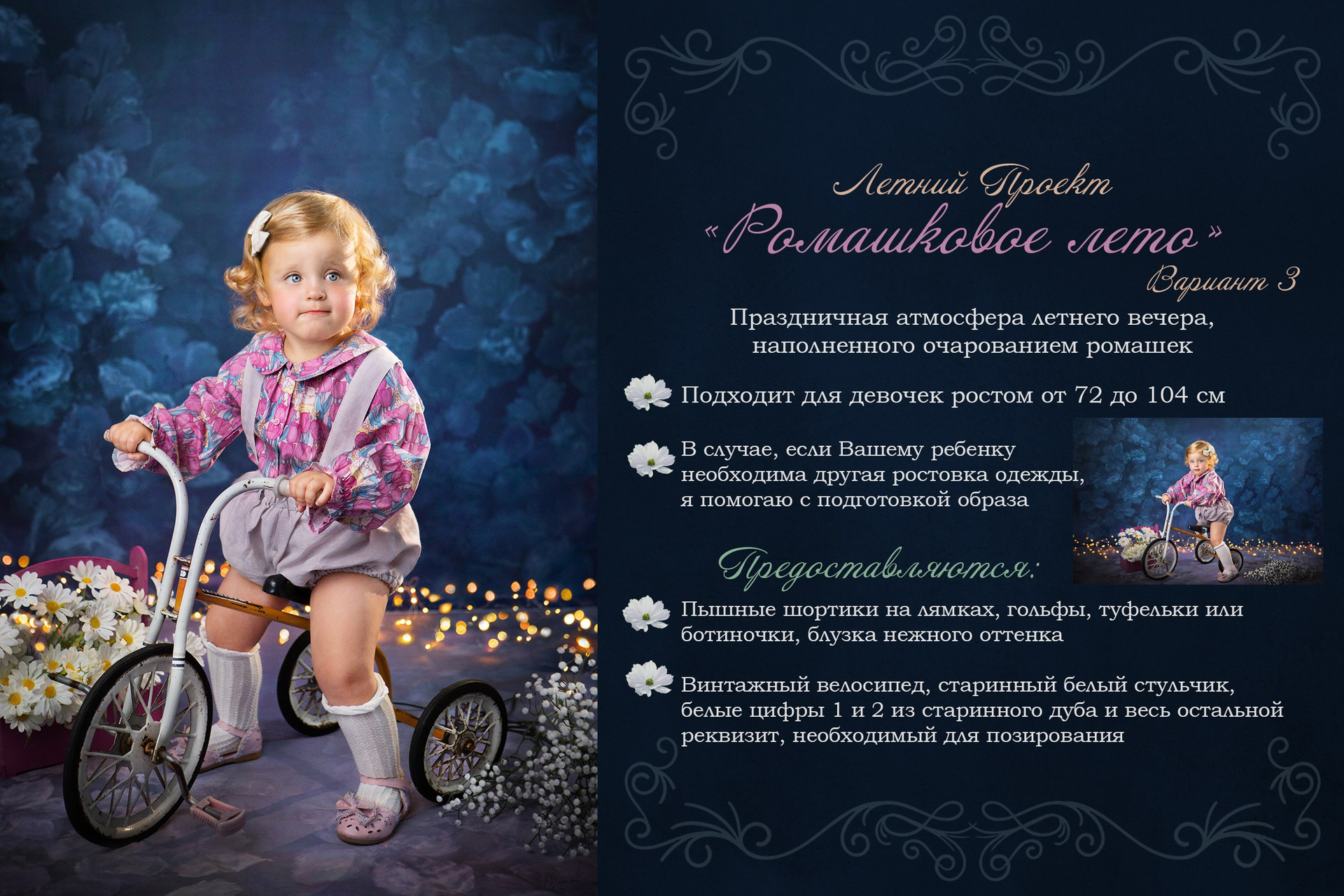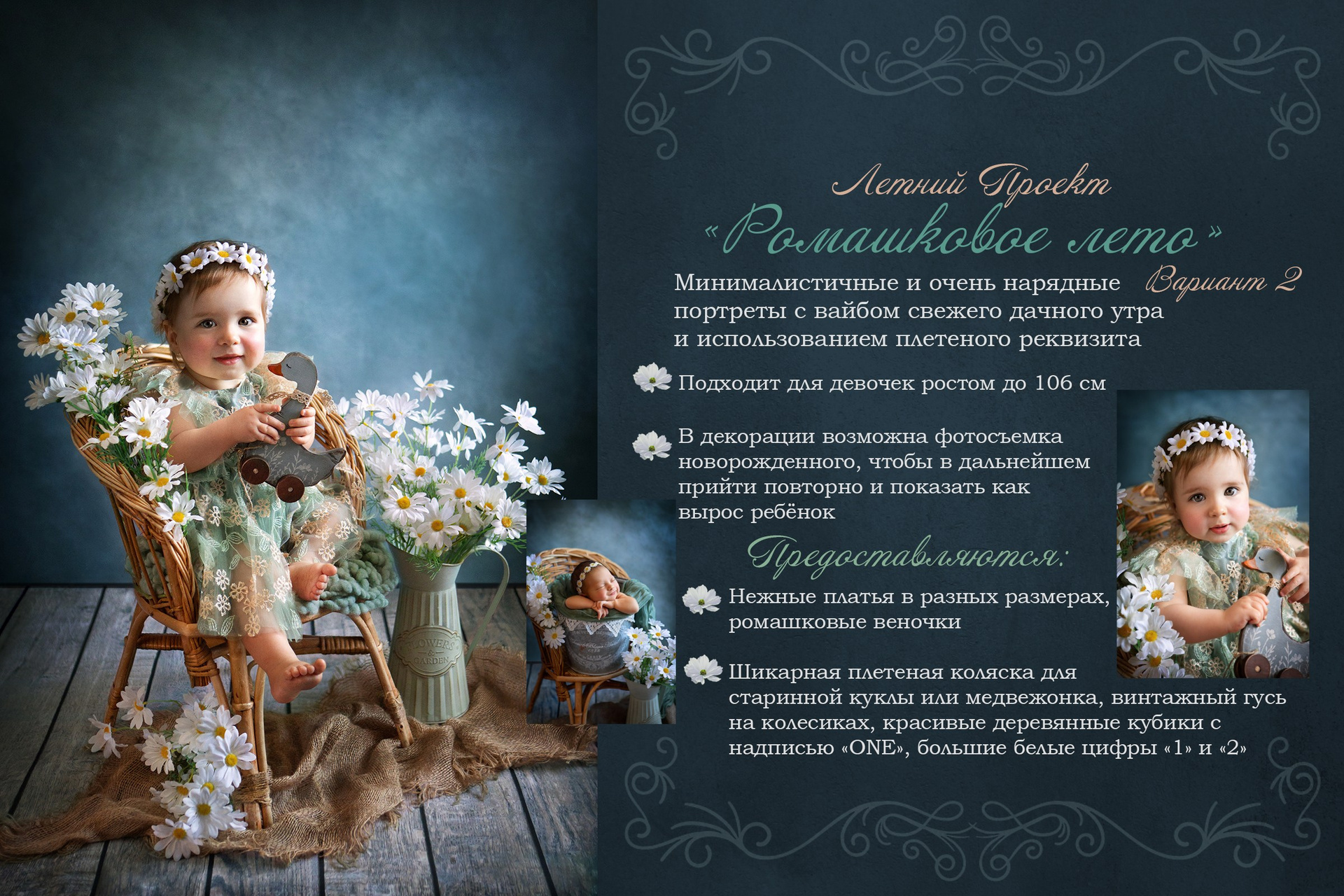 - Для малышей до 2-х лет я часто практикую постановку сразу двух разных декораций за одну фотосессию. Постановка дополнительной декорации для малышей также стоит 1500 рублей.